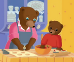 Papa Ours et Maman Ours ont préparé un très bon déjeuné car ils attendent la venue du papy...