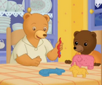 Petit Ours brun joue à la dînette